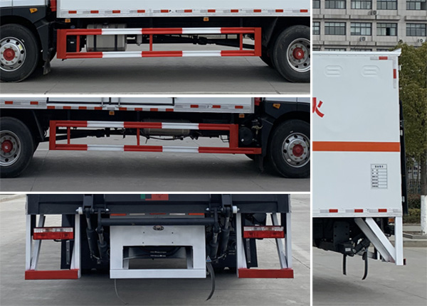 | 整車備注: | 該車為危險貨物運輸車輛,運輸介質(zhì)具有獨立容器包裝,介質(zhì)類項號:3;廂體頂部封閉,不可開啟;外形尺寸長(mm)/軸距(mm)/后懸(mm)的對應(yīng)關(guān)系:9995/5600/3135,9100/5300/2540,8600/4700/2640;側(cè)、后防護材質(zhì)均為Q235,連接方式為焊接連接,后防護裝置斷面尺寸為(mm):120×50,離地高度:500mm;隨底盤選裝駕駛室;EBS型號/廠家:EBS/ESC-d/襄陽東風(fēng)隆誠機械有限責(zé)任公司;僅采用子午線輪胎,排氣管前置,前輪盤式制動器,安裝限速裝置(限速80km/h).安裝具有衛(wèi)星定位的行駛記錄儀,轉(zhuǎn)向輪裝備輪胎爆胎應(yīng)急防護裝置,后軸安裝空氣懸架,選裝ETC車載裝置;發(fā)動機型號及油耗值(L/100km)分別為:B6.2NS6B230(26.3),D4.5NS6B220(26.6),YCS04200-68(26.4),CY4SK761(26.8);安裝液壓尾板時,尾板收起狀態(tài)的水平長度300mm,尾板質(zhì)量450kg. | ||
