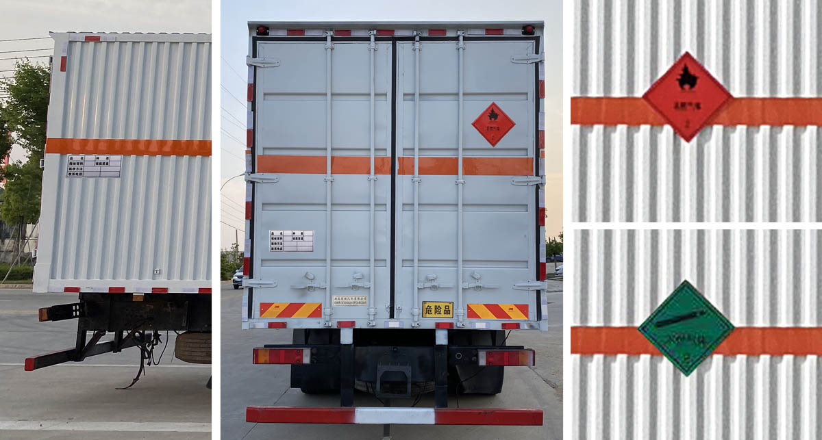 | 1、該車適用于運輸危險品。廂體頂部封閉,不可開啟。運輸具有獨立容器包裝的易燃氣體及運輸具有獨立容器包裝的非易燃無毒氣體。運送危險品類項號:2.1,2.2。液壓升降尾板收起狀態(tài)水平長度為290mm,尾板質(zhì)量為550kg。2、側(cè),后防護材料均為Q235,螺栓連接;后防護截面尺寸120×60mm,下邊緣離地高490mm。選裝后部無液壓尾板。3、隨底盤選裝平頂駕駛室;選裝駕駛室前面罩;高頂駕駛室頂部氣喇叭為選裝件;駕駛室前角擾流板為選裝件。僅選用排氣管前置、限速裝置(限速80km/h)、前輪盤式制動及子午線輪胎的底盤;安裝帶衛(wèi)星定位功能的行駛記錄儀。ABS型號/生產(chǎn)廠家:ABS 8/東科克諾爾商用車制動系統(tǒng)(十堰)有限公司。發(fā)動機/油耗值(L/100km)對應關系為:DDi75E350-60/38.1。后軸采用空氣懸架,轉(zhuǎn)向輪裝備輪胎爆胎應急防護裝置。 | |||