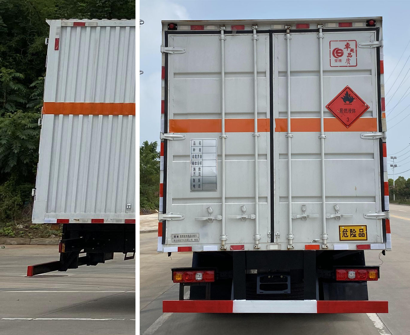 | 整車備注: | 1、該車適用于危險(xiǎn)品運(yùn)輸,類項(xiàng)號(hào):3。2、側(cè)、后防護(hù)材料均為Q235,側(cè)防護(hù)螺栓連接;后防護(hù)焊接,截面尺寸(寬×高)(mm)60×120,下邊緣離地高480mm。3、僅采用軸距(mm): 1800+4575+1400。EBS系統(tǒng)生產(chǎn)廠家及型號(hào)為:威伯科汽車控制系統(tǒng)(中國)有限公司(EBS3),廣州瑞立科密汽車電子股份有限公司(CM-EBS)。僅選用排氣管前置、限速裝置(限速79km/h)、前輪盤式制動(dòng)及子午線輪胎的底盤;安裝帶有衛(wèi)星定位功能的行駛記錄儀;發(fā)動(dòng)機(jī)型號(hào)及油耗值(L/100km)為:WP7.270E61/37.47,WP7.300E61/37.47,WP8.320E61/38.07,WP8.350E61/38.07。后軸采用空氣懸架。轉(zhuǎn)向輪安裝輪胎爆胎應(yīng)急防護(hù)裝置。尾板收起狀態(tài)水平長度為290mm,尾板質(zhì)量為550kg。該車型可選裝ETC車載裝置.選裝后部無尾板;選裝側(cè)門型式及位置,選裝側(cè)門數(shù)量,選裝不開側(cè)門,廂體側(cè)面板選裝開百葉窗,選裝瓦楞板結(jié)構(gòu)。廂體頂部封閉不可開啟。運(yùn)輸具有獨(dú)立容器(瓶)包裝的物品。 | ||